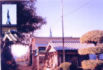 「高橋庵」道場、屋上にて「逆立ち」の図 250年位経っている「甘柿の大木」 私が3ケ月 かけて弓道場を造っていても、孫たちは 関心がなく何とも思わない。 屋根上で「逆立ち」して見せたら 「ビックリ」 止めろと怒鳴っていた。 |